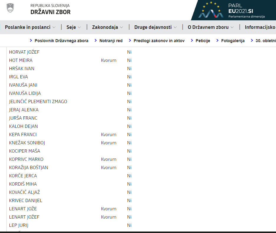 Poslanci opozicije so izredno sejo sklicali zato, ker naj bi šlo za obravnavo pomembnih političnih zadev, nazadnje pa je na seji manjkala celo večina njihovih poslancev. Nič boljše ni bilo z udeležbo koalicijskih poslancev in poslank. Na slikah, ki so del pričujočega članka, so objavljeni vsi poslanci in poslanke, ki so bili na izredni seji in vsi, ki so na njej manjkali.