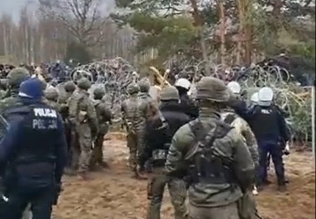 Dve večji skupini nasilnih migrantov sta v torek zvečer v bližini vasi Krynki in Bialowieza na severovzhodu Poljske, porušili ograjo in prečkali mejo, je v torek zvečer poročala poljska tiskovna agencija PAP, sklicujoč se na lokalno radijsko postajo Bialystok. Pri tem so si migranti pomagali z različnimi orodji in napravami. Poljska policija je aretirala več deset migrantov v bližini meje. Radijska postaja Bialystok je potrdila, da sta bili v obeh primerih ograji na meji nasilno porušeni. Nekatere migrante so vrnili v Belorusijo, drugim pa je uspelo pobegniti. Na beloruski strani še vedno ostaja več sto migrantov, prihajajo pa še novi.