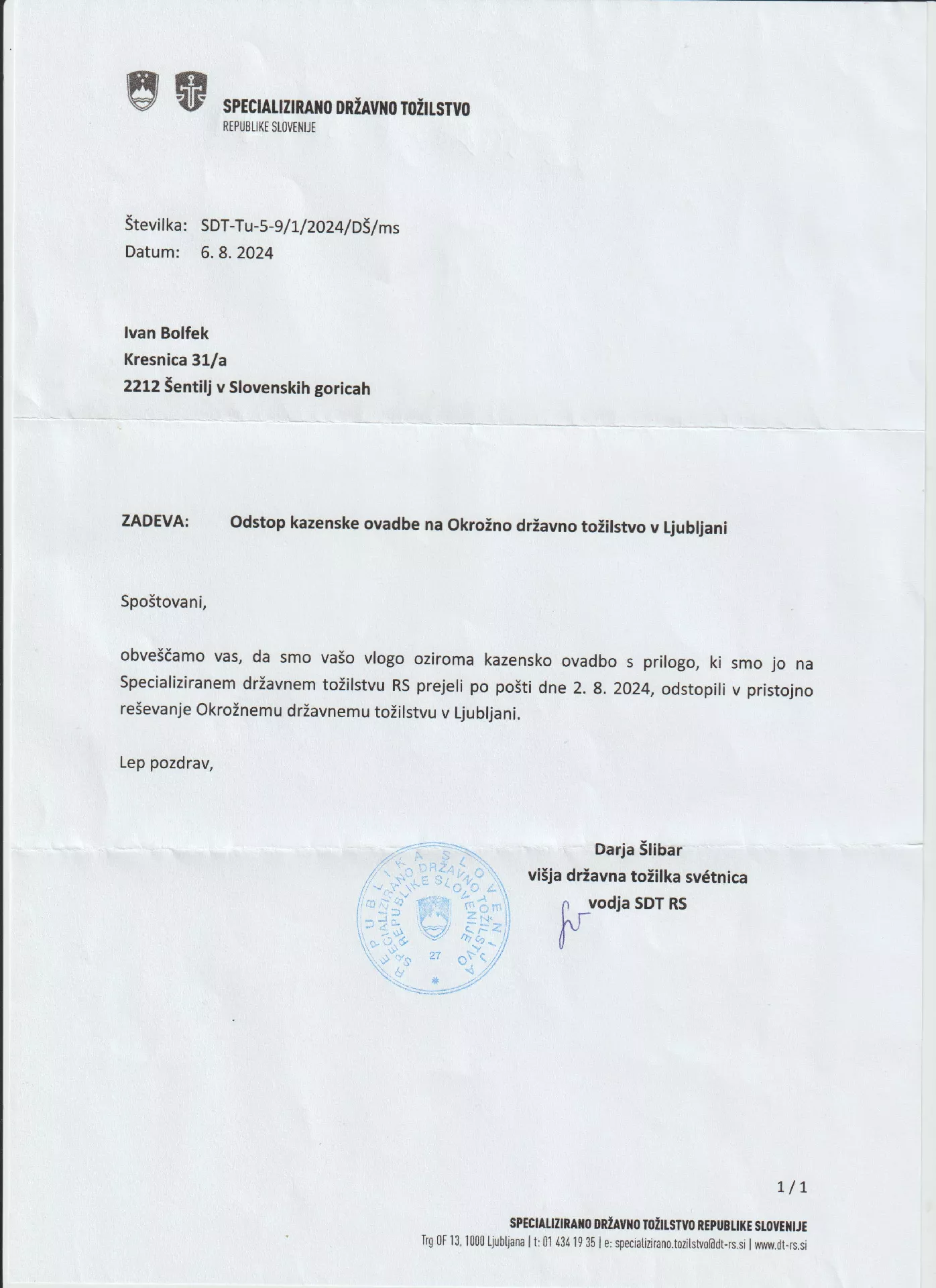 Od tedaj je minilo že 112 dni, naš notranji vir, ki ne želi biti imenovan, pa trdi, da ima ljubljansko okrožno tožilstvo navodila, da kazensko ovadbo zoper ministra Poklukarja drži shranjeno v enem izmed predalov omare v pisarni tožilstva.